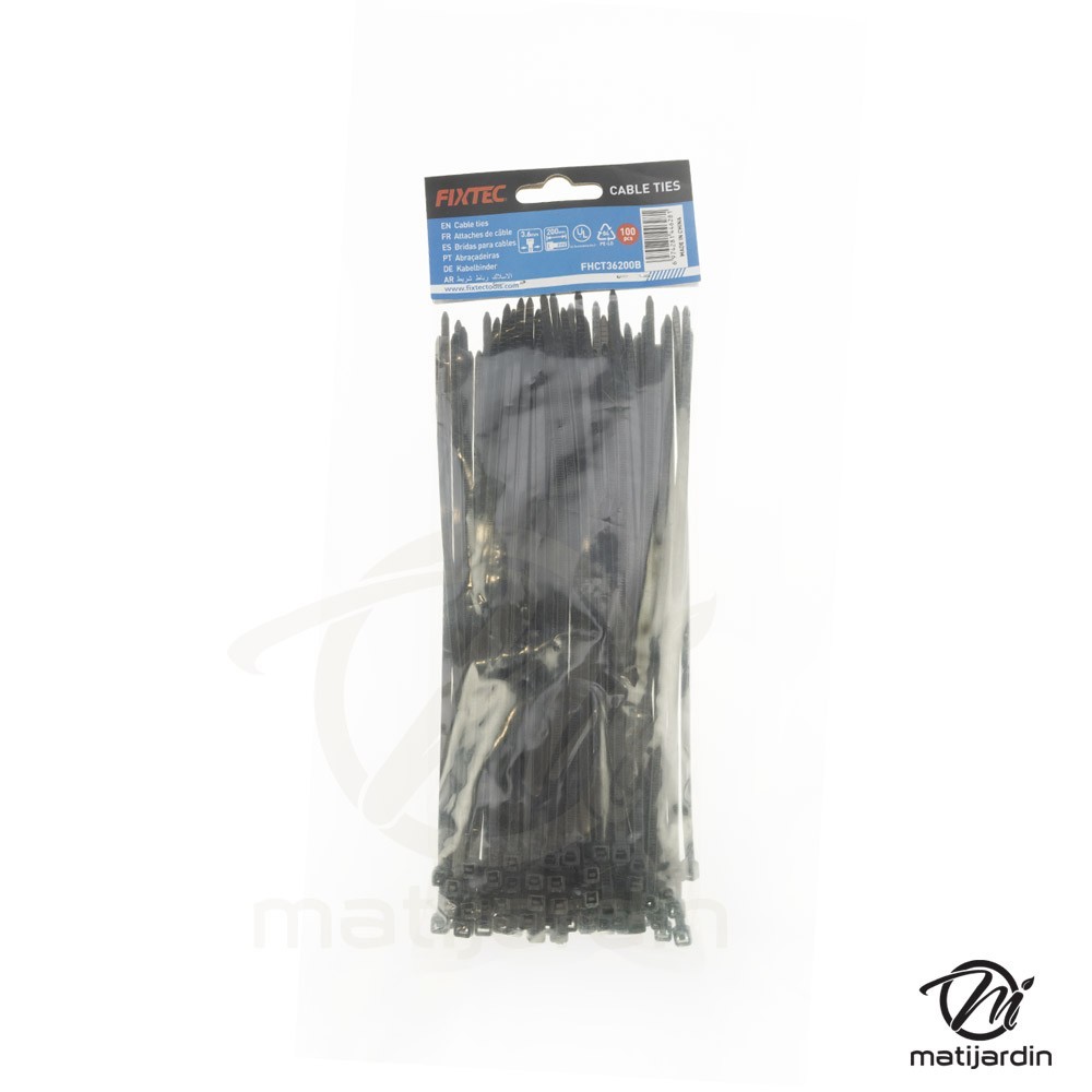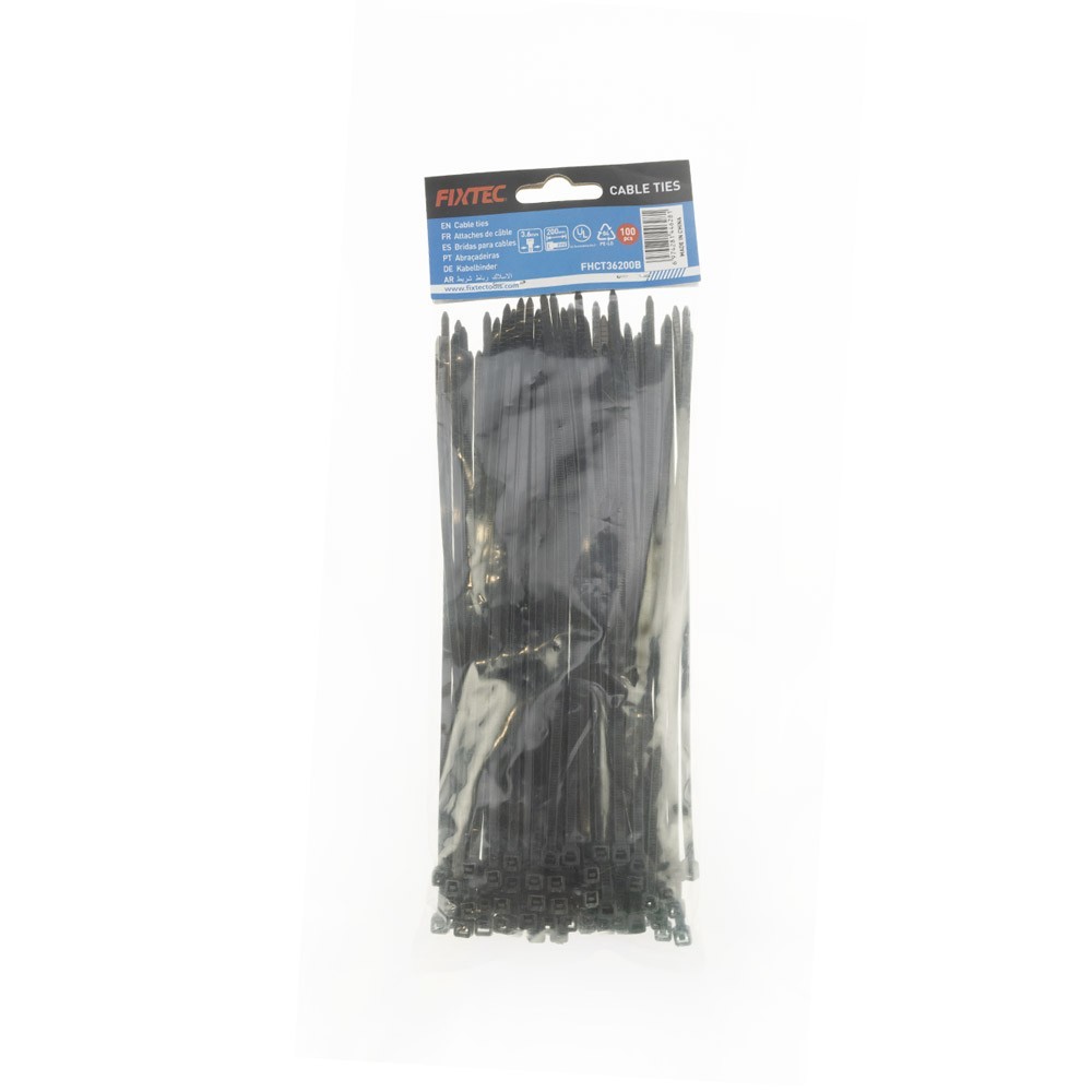 Lot de 100 attache-câble noire 3,6 x 200 mm - Fixtec