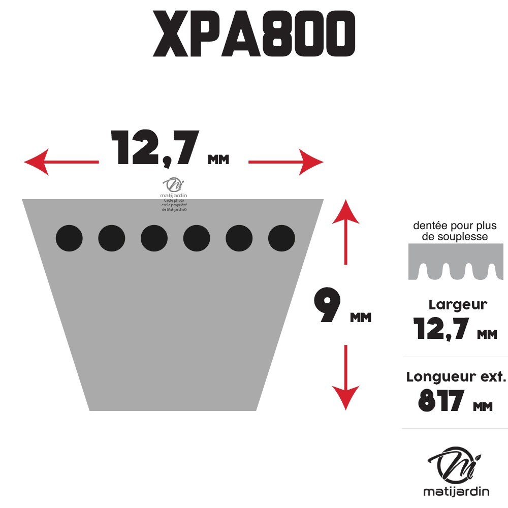 Courroie tondeuse XPA800 Trapézoïdale Crantée - 12,7 mm x 817 mm