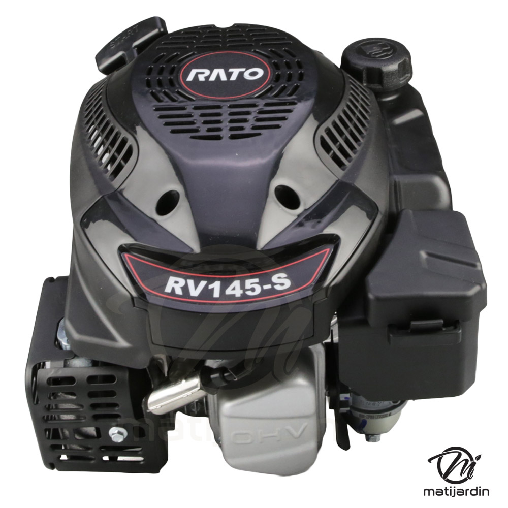 Le moteur thermique RATO RV145-S est un monocylindre 4 temps à arbre vertical, idéal pour remplacer les motorisations d’origine sur les tondeuses thermiques (autotractées ou poussées) ainsi que sur certaines motobineuses compactes.