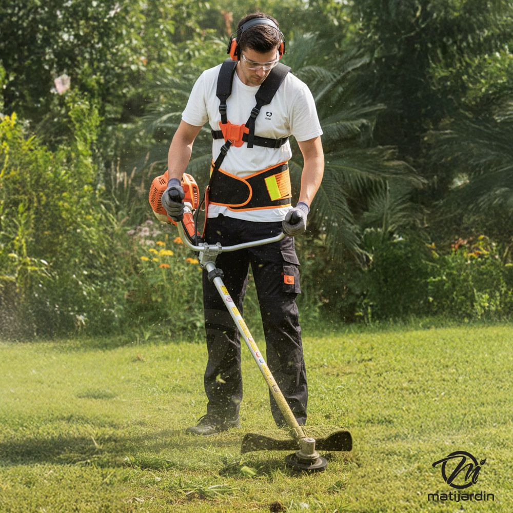 - S'adapte à la majorité des débroussailleuses (thermiques ou électriques) portées par harnais