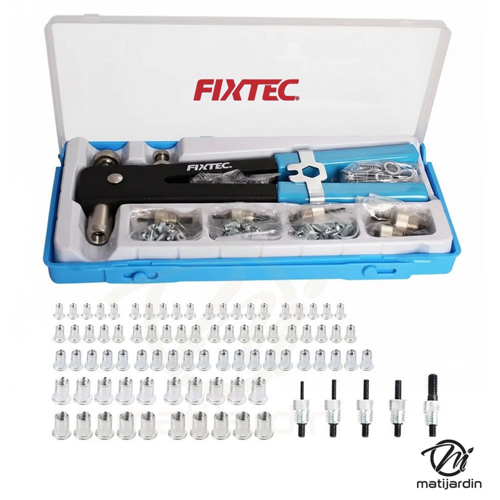 Pince à rivets filetés 11" avec 5 mandrins M3 à M8 et 80 écrous à sertir – Coffret 86 pièces - Fixtec
