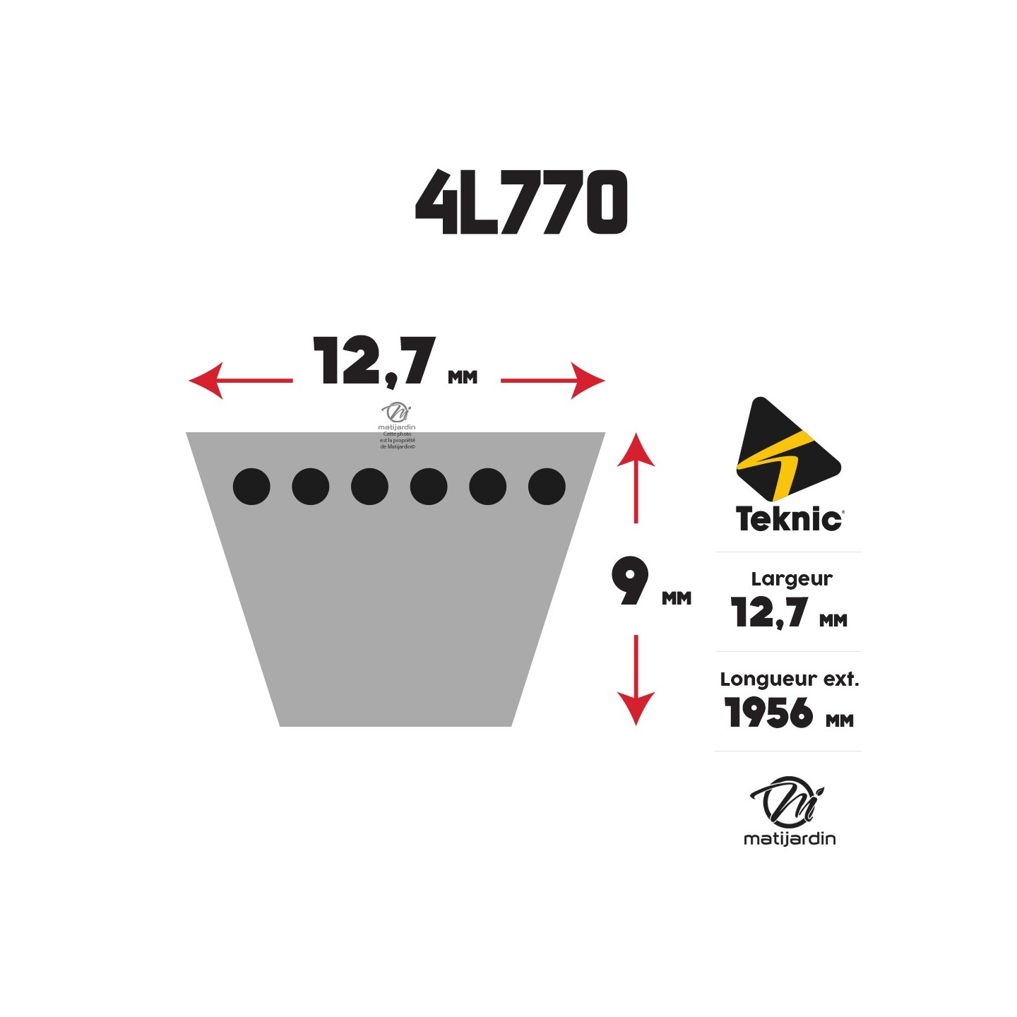 Courroie tondeuse 4L770 Teknic Kevlar Trapézoïdale - 12,7 mm x 1956 mm
