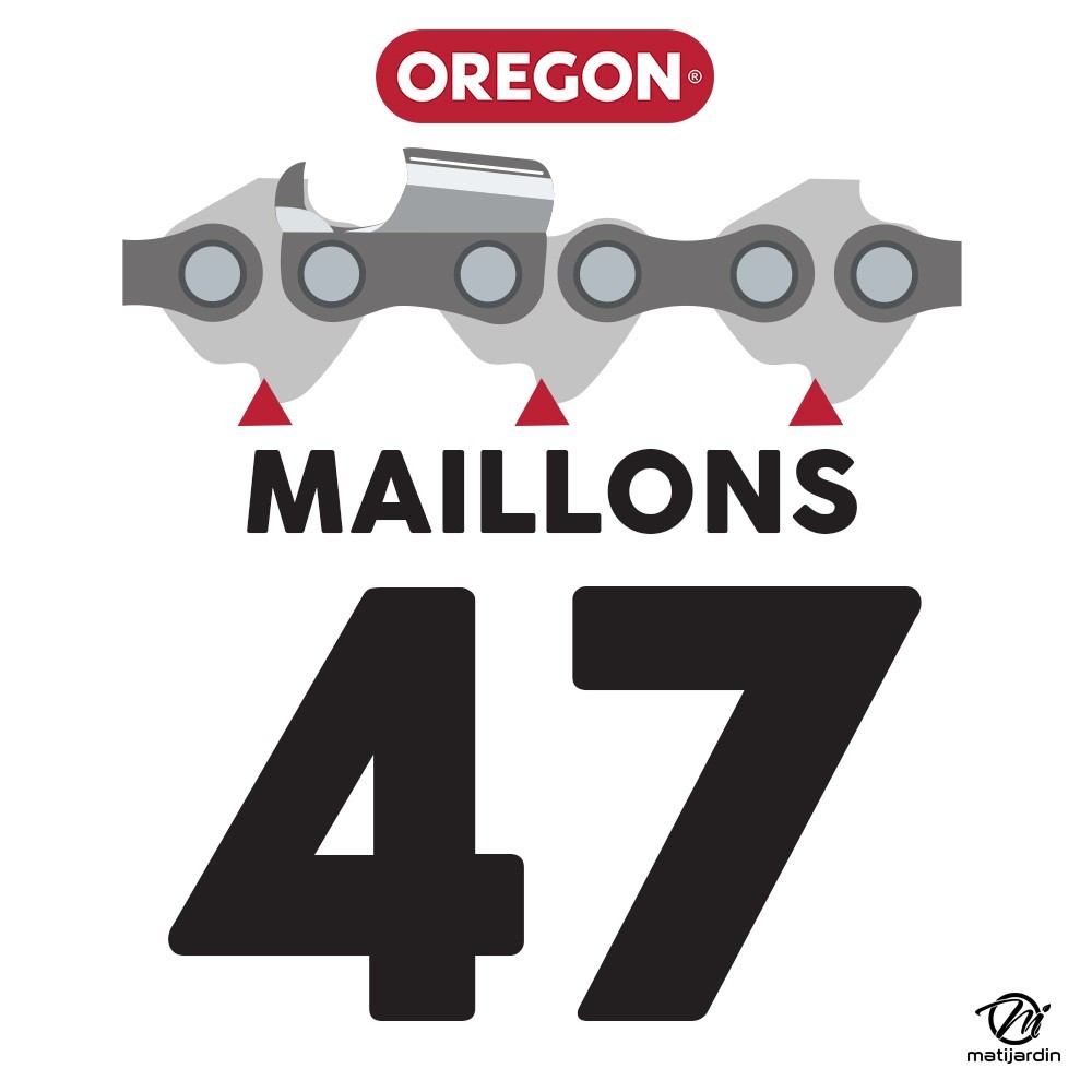 Chaîne Oregon pour tronçonneuse 3/8" LP 1,3 mm. 47 maillons. Gouge profil demi carré