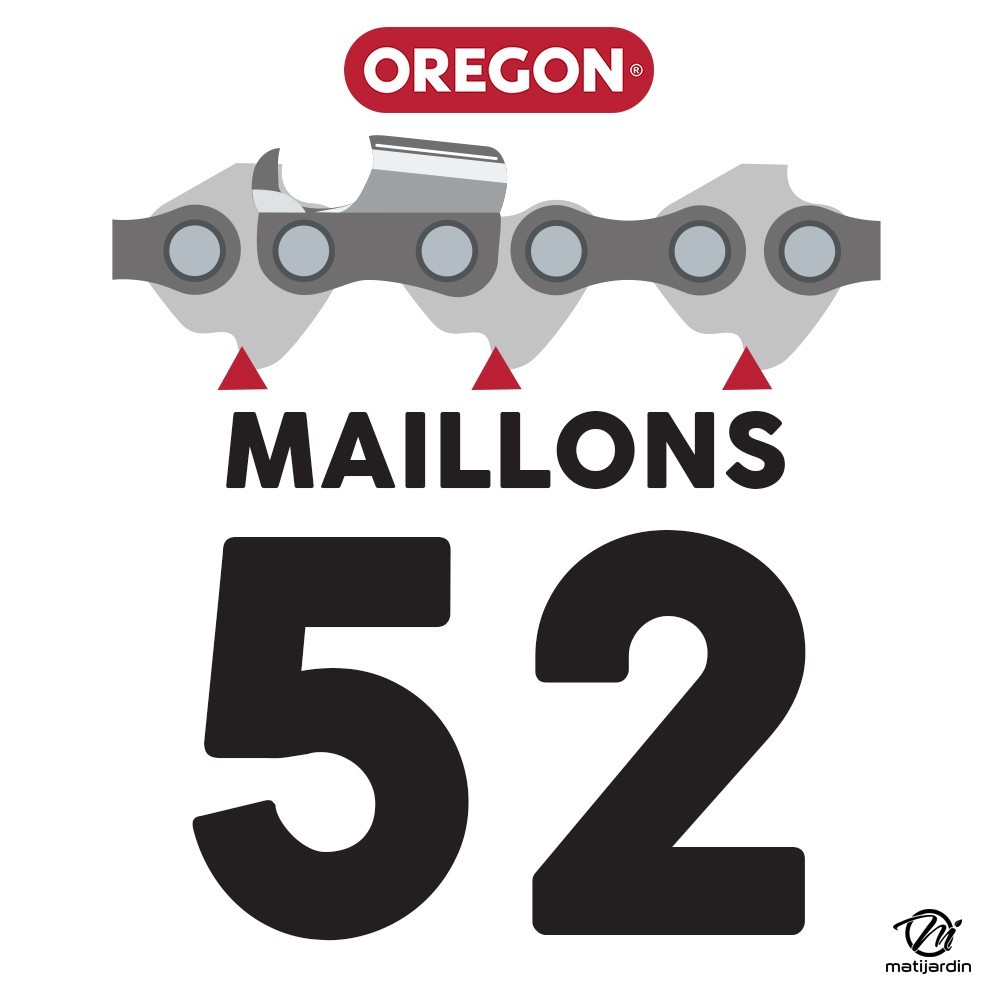 Chaîne Oregon pour tronçonneuse 3/8" LP 1,3 mm. 52 maillons. Gouge profil demi carré