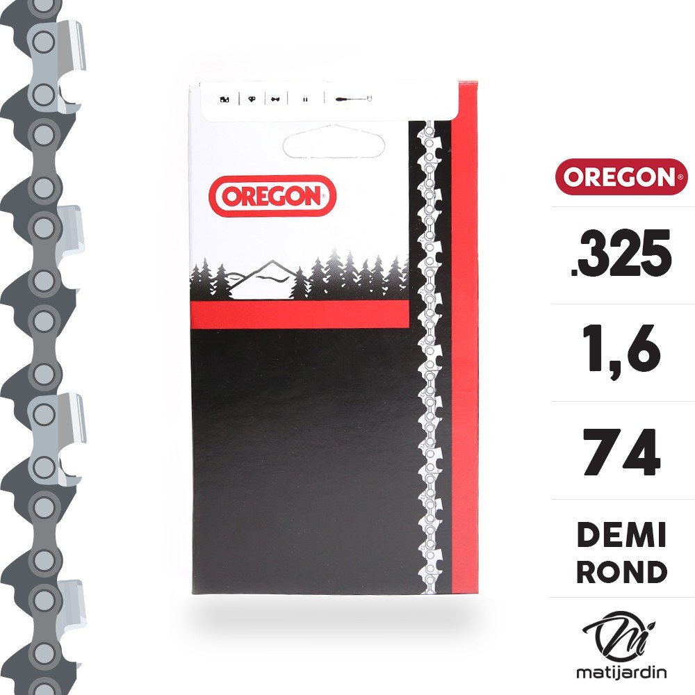Chaîne Oregon pour tronçonneuse .325" 1,6 mm. 74 maillons. Gouge profil demi rond