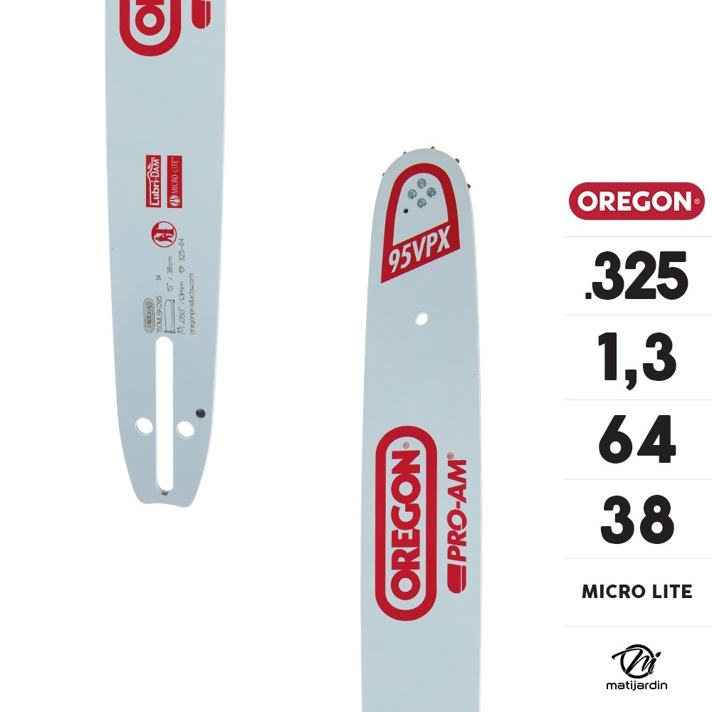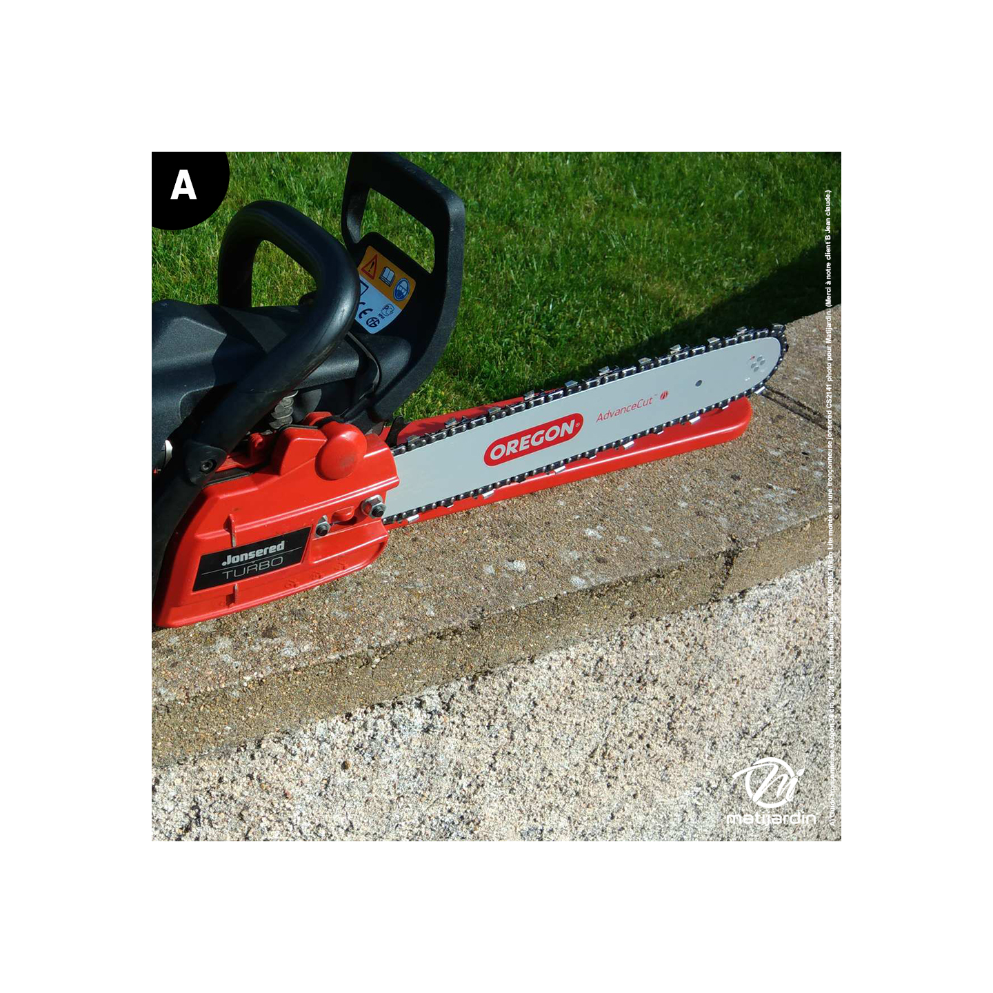 A) Guide tronçonneuse Oregon 38 cm. .325" 1,3 mm 64 maillons 150MLBK095 Micro Lite monté sur une tronçonneuse Jonsered CS2141 photo pour Matijardin. (Merci à notre client B Jean claude.)