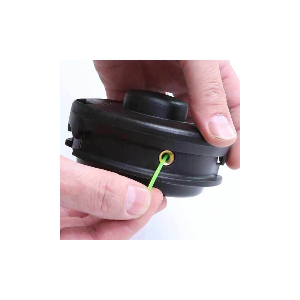 L'insertion du fil est une étape clé pour garantir la bonne rotation de votre tête de débroussailleuse et éviter les vibrations inutiles.