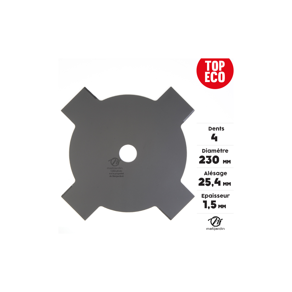 Lame débroussailleuse 4 dents Ø 230 mm x 1,5 mm Alésage 25,4 mm