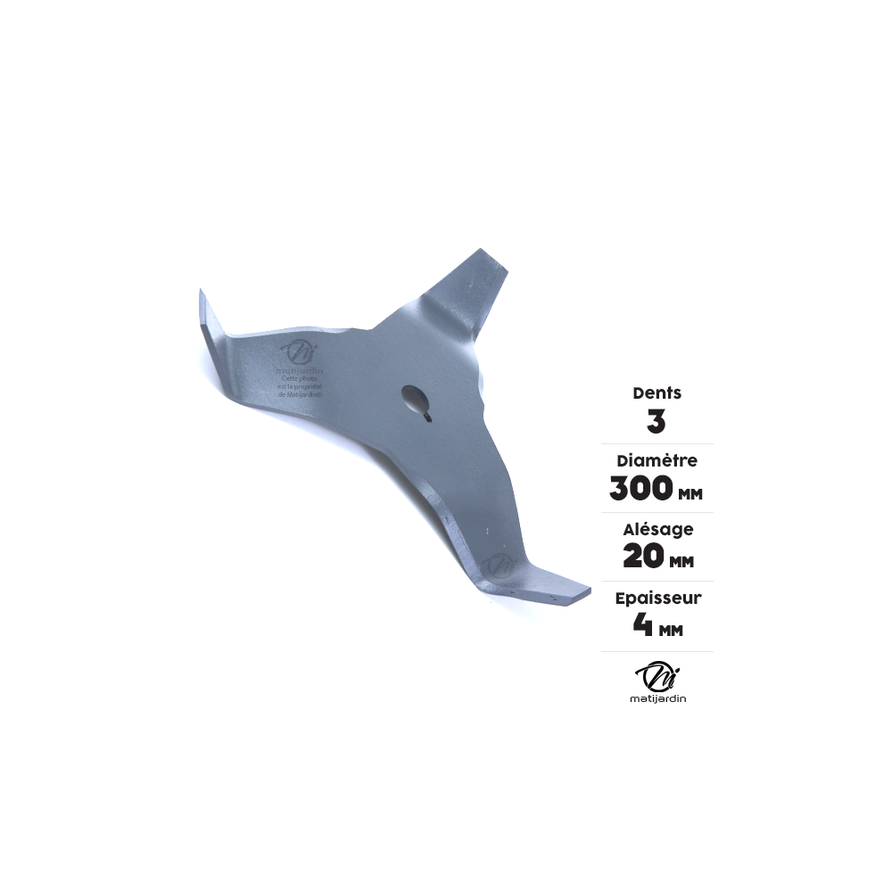 Lame débroussailleuse 3 dents Ø 300 mm x 4 mm Alésage 20 mm