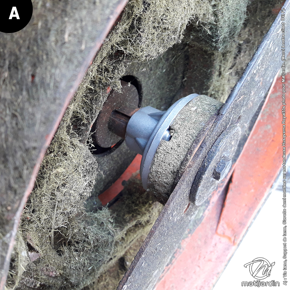 A) : Support de lame montées sur ma tondeuse Husqvarna Royal53s photo pour Matijardin. (Merci à notre client Bill F).
