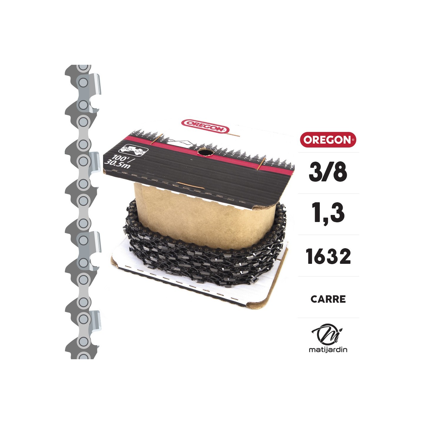 Chaîne Oregon pour tronçonneuse 3/8" 1,3 mm. Rouleau 100 pieds. Gouge profil carré. Super 70