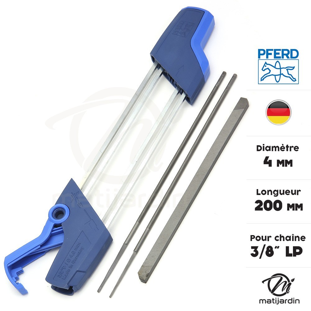 Vendu avec deux limes rondes diamètre 4 mm et une lime plate 9x6 mm pour les limiteurs de profondeur.