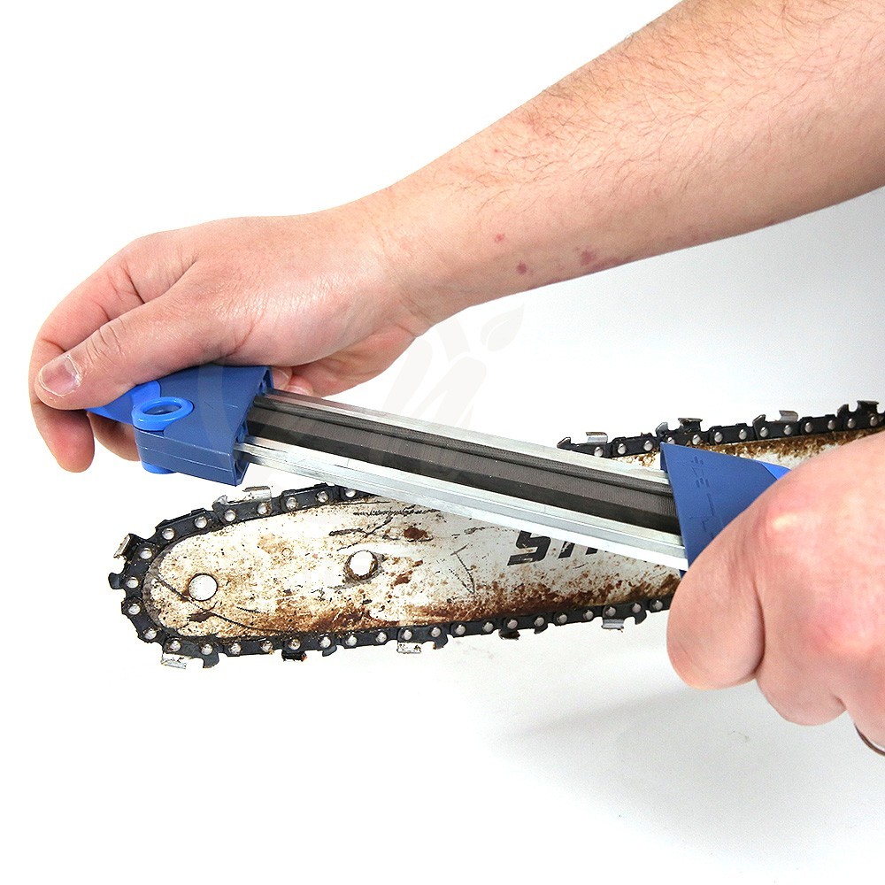 Permet d'affûter toutes les gouges de votre chaîne sans démontage et simultanément de limer les limiteurs de profondeur.