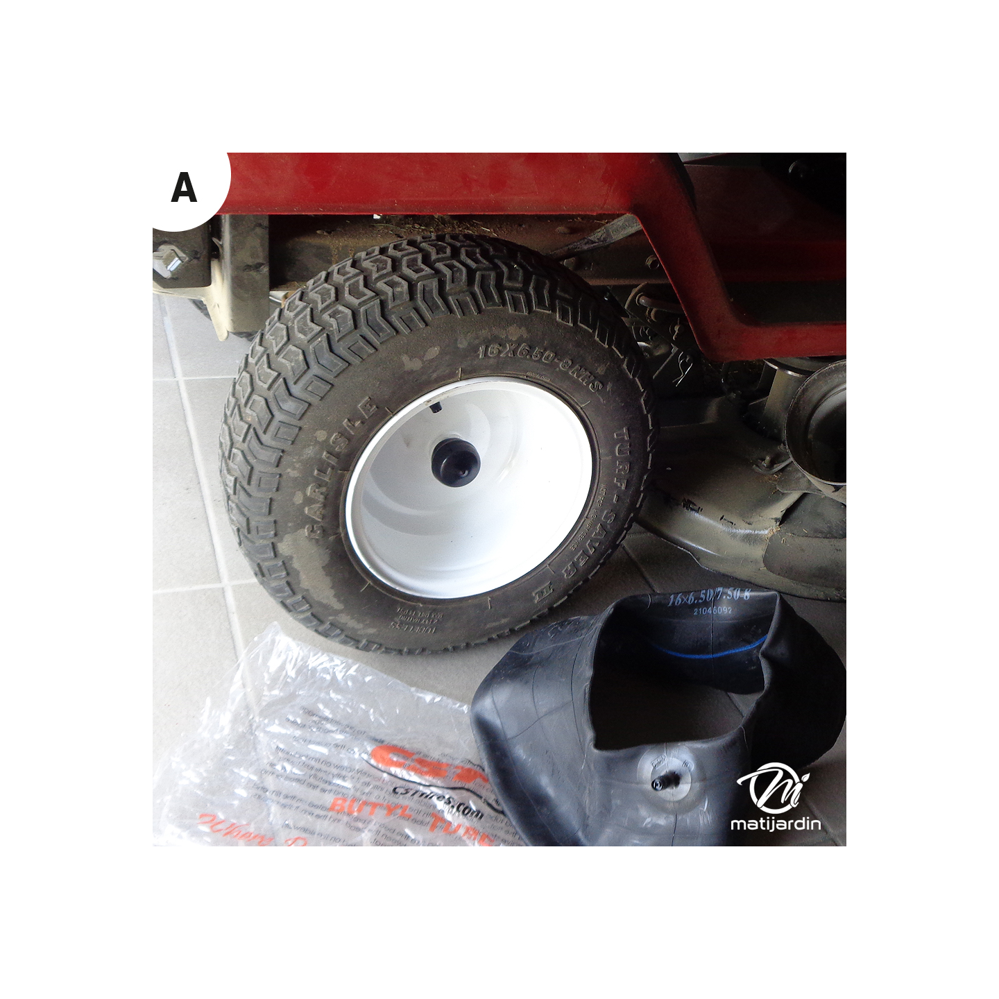 A/ Chambre à air. 16x650x8. Valve à droite Pour tracteur tondeuse Rally RE91r12B. (Photo Client)
