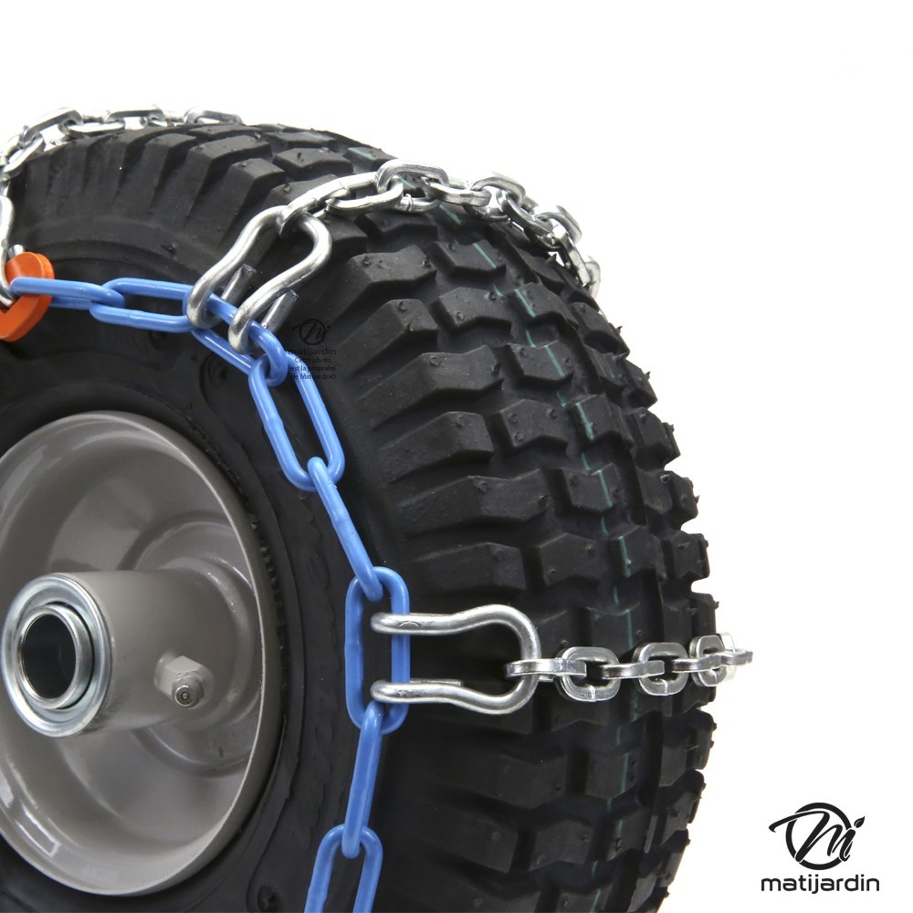 Ces chaînes à neige sont conçues spécifiquement pour les pneus de tondeuses et tracteurs tondeuses autoportées.