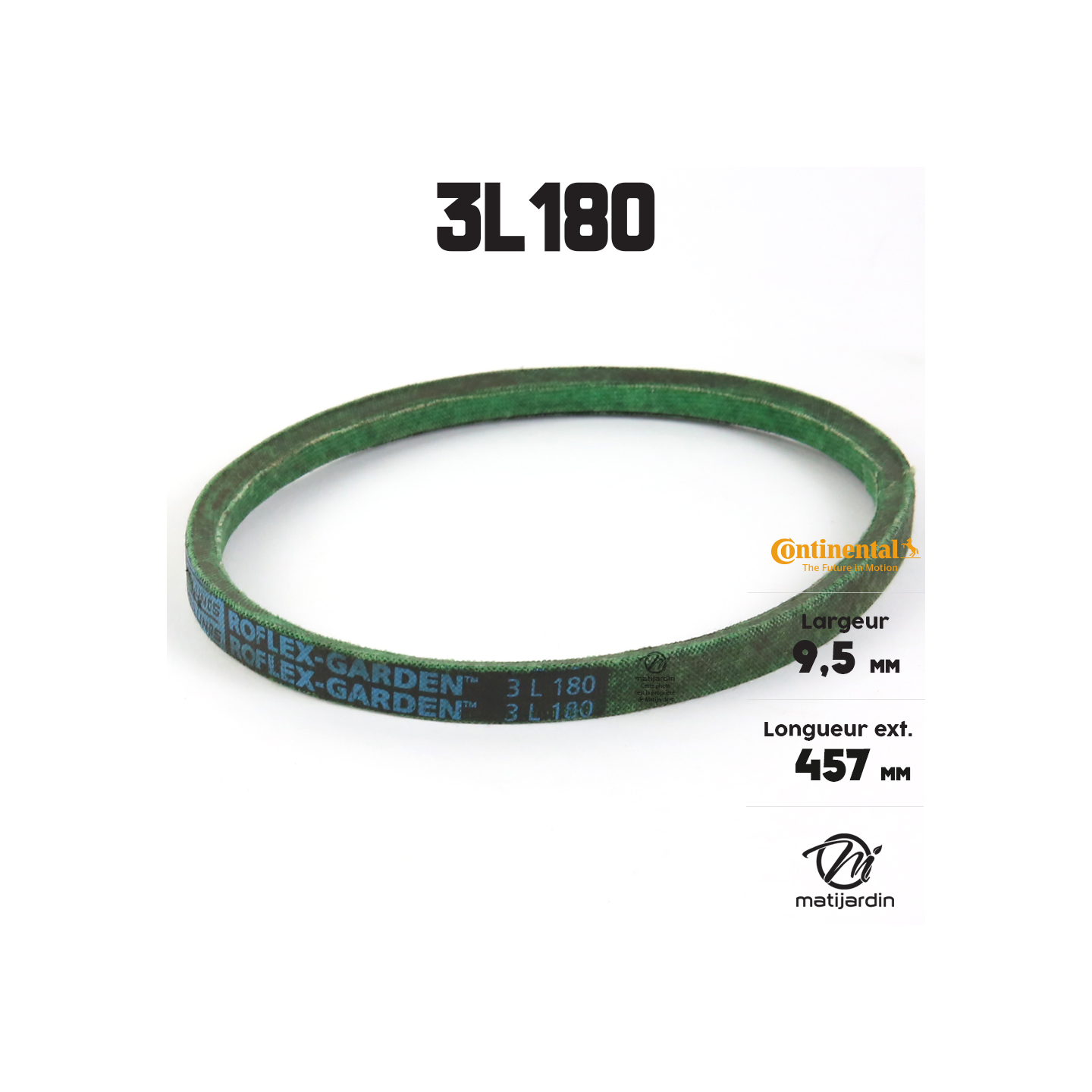 Courroie tondeuse 3L180 Continental Kevlar - 9,5 x 6 x 457 mm