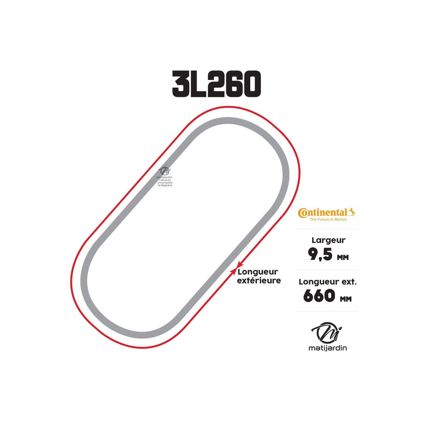 Courroie tondeuse 3L260 Continental Kevlar - 9,5 x 6 x 660 mm