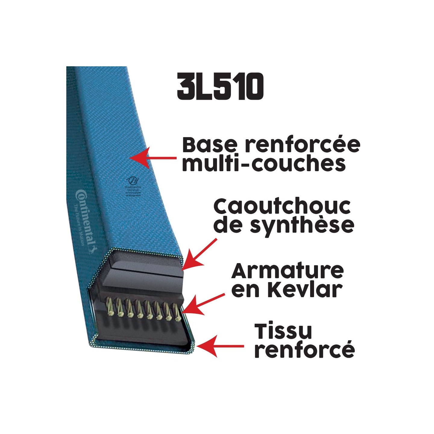 Courroie tondeuse 3L510 Continental Kevlar - 9,5 x 6 x 1295 mm