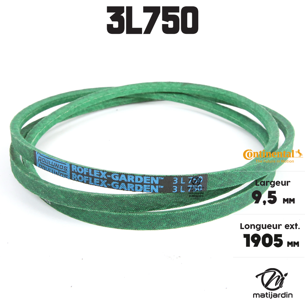 Courroie tondeuse 3L750 Continental Kevlar - 9,5 x 6 x 1905 mm