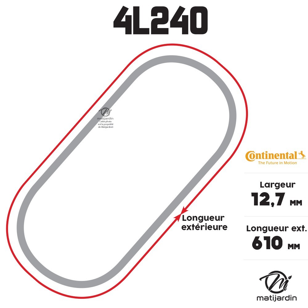 Courroie tondeuse 4L240 Continental Kevlar - 12,7 x 7,2 x 610 mm