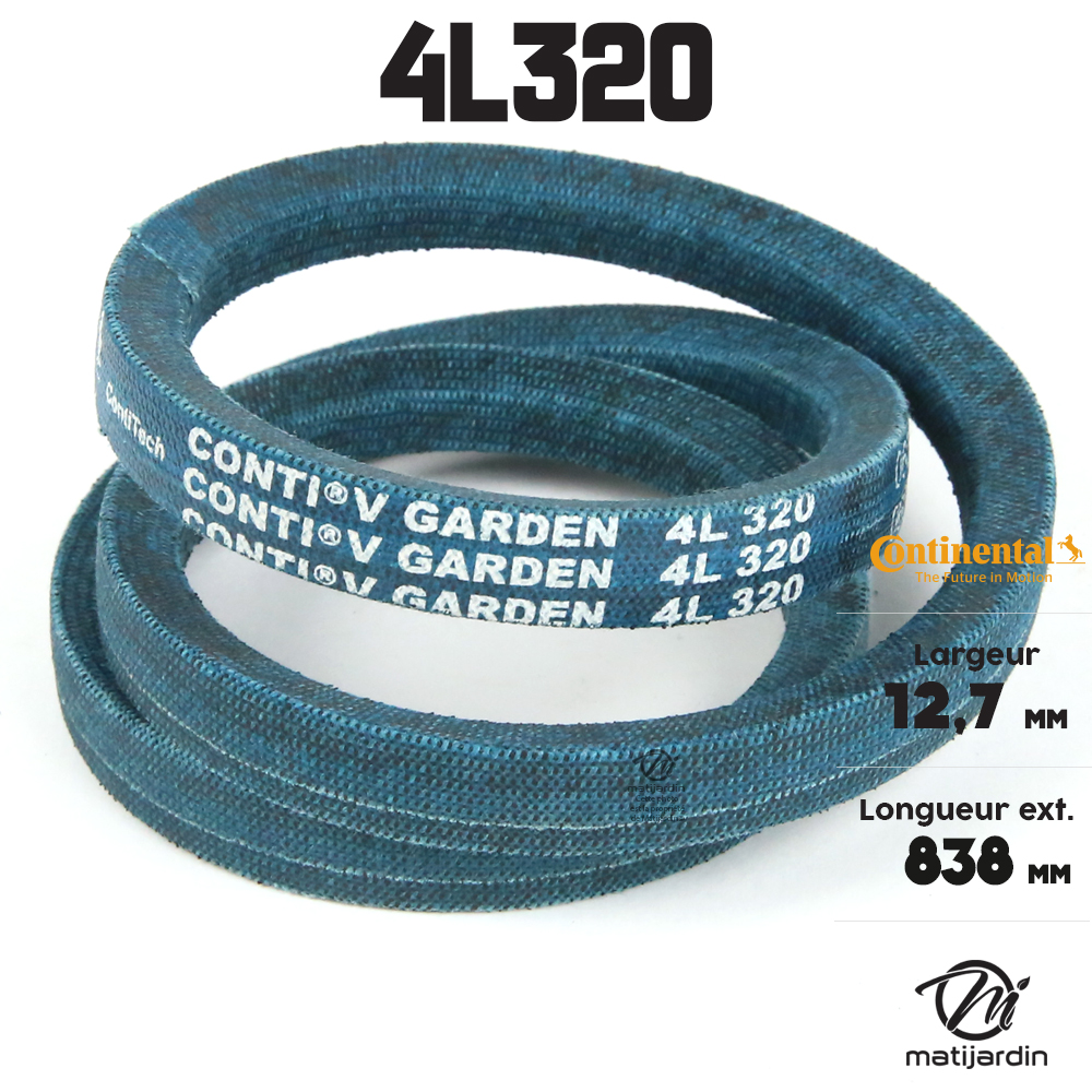 Courroie tondeuse 4L320 Continental Kevlar - 12,7 x 7,2 x 813 mm