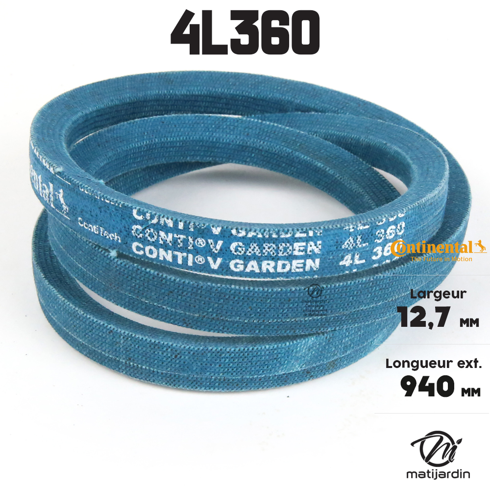 Courroie tondeuse 4L360 Continental Kevlar - 12,7 x 7,2 x 914 mm