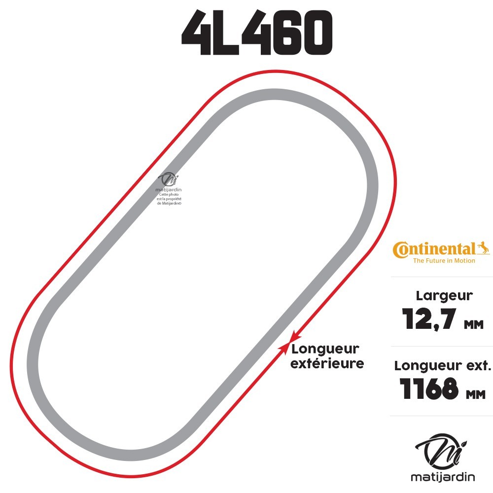Courroie tondeuse 4L460 Continental Kevlar - 12,7 x 7,2 x 1168 mm