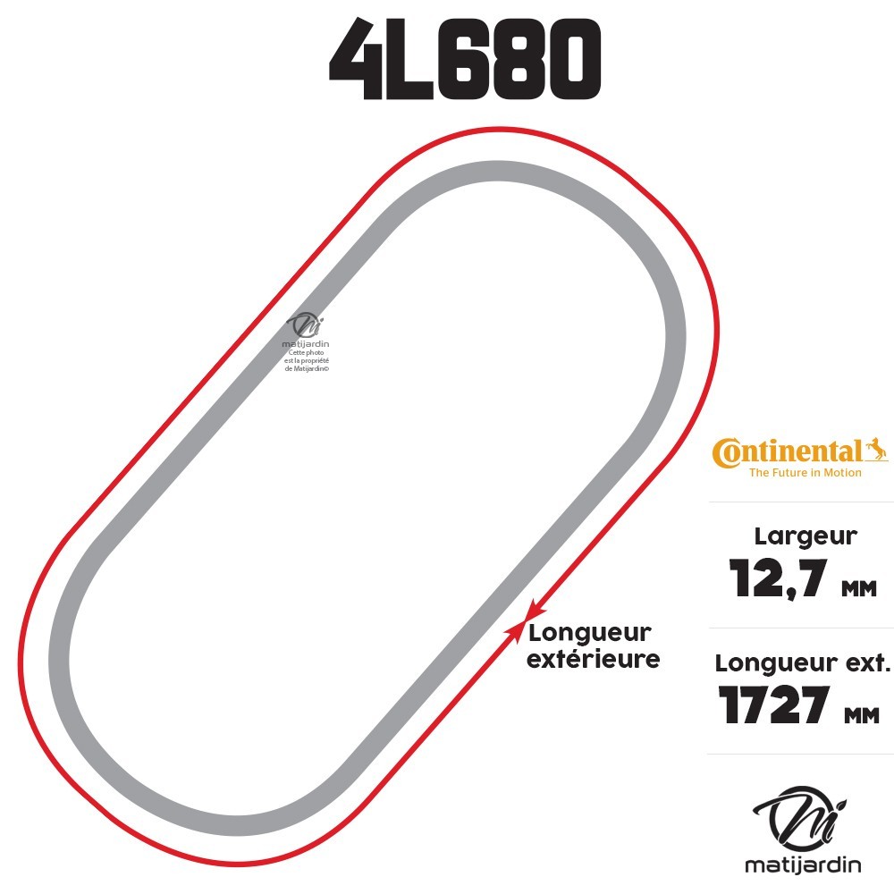 Courroie tondeuse 4L680 Continental Kevlar - 12,7 x 7,2 x 1727 mm
