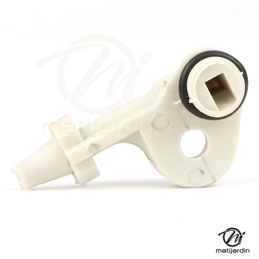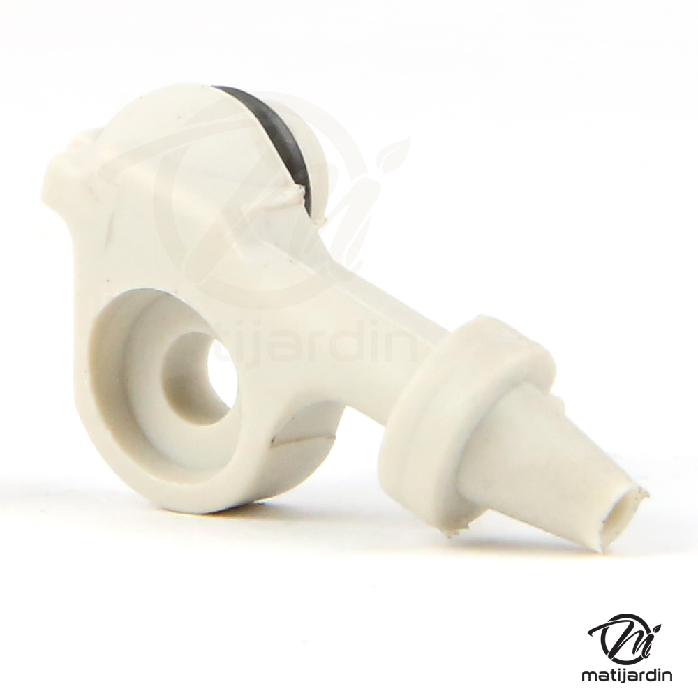 Cette pièce est un raccord en équerre fixé entre la pompe à huile de chaîne et la durite de réservoir