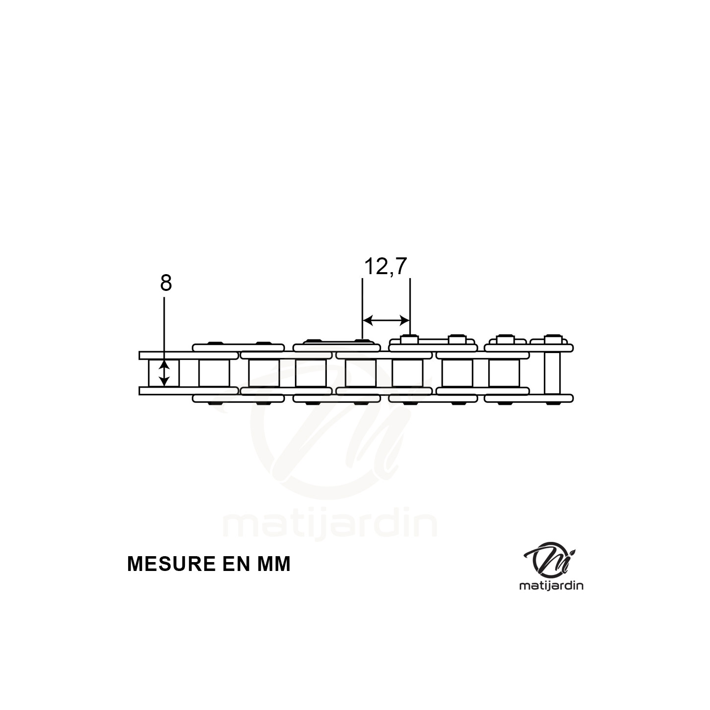 Chaine de transmission C40 3 mètres de longueur 12,7 x 8 mm