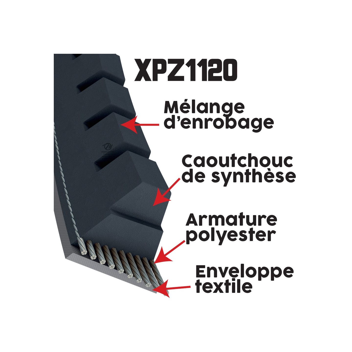Courroie tondeuse XPZ1120 Trapézoïdale crantée - 9,7 mm x 1132 mm