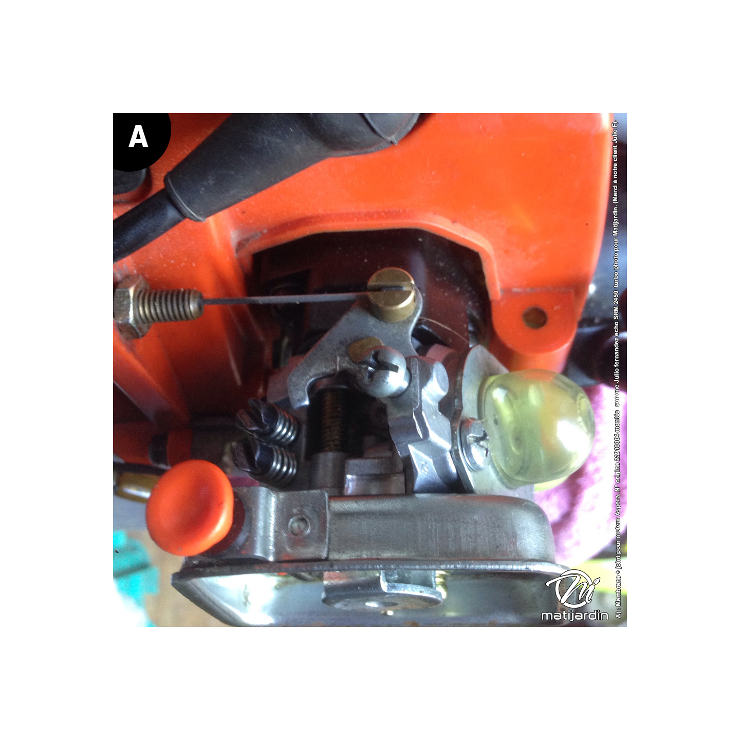 A) : Membrane + joint pour moteur Aspera. N° origine 23910004 montée sur une echo SRM 2450 turbo photo pour Matijardin. (Merci à notre client Julio F).