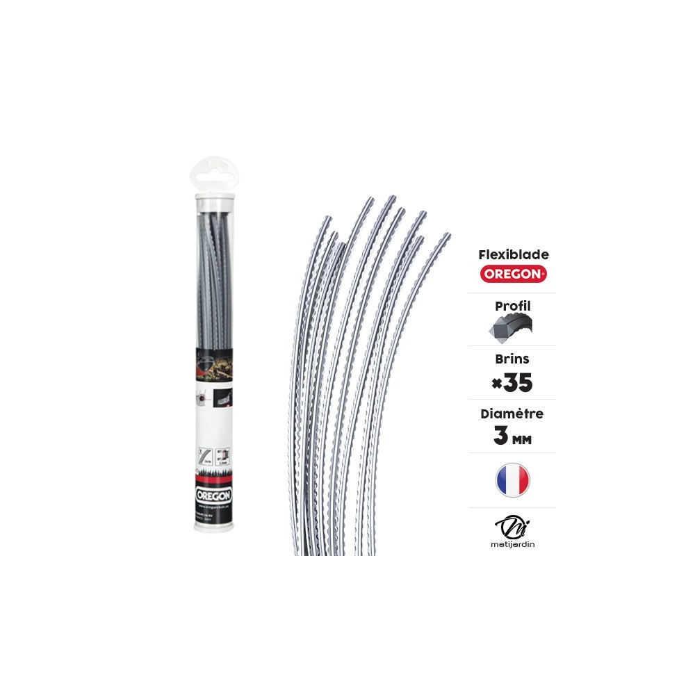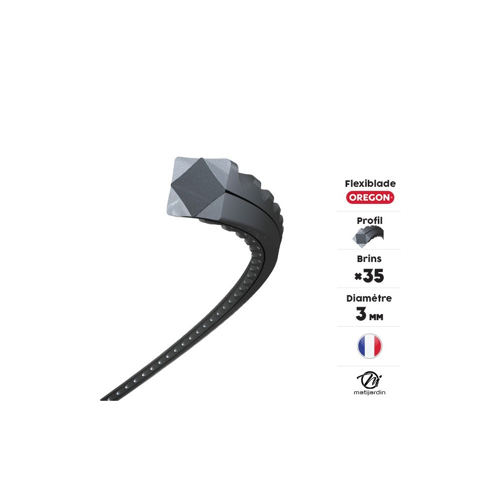 Le fil débroussailleuse Carré, Cranté 3 mm Oregon FlexiBlade convient aux broussailles épaisses. Son profil cranté accroît la performance de coupe dans les végétations dures.
