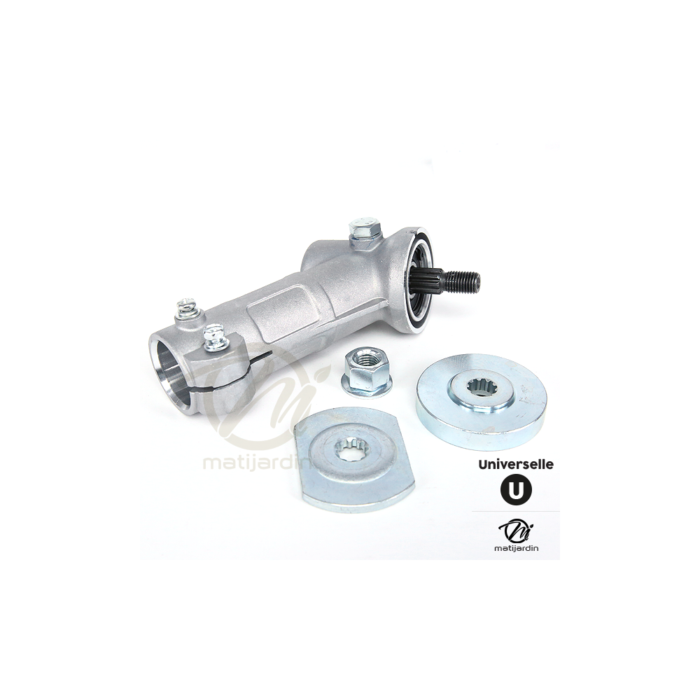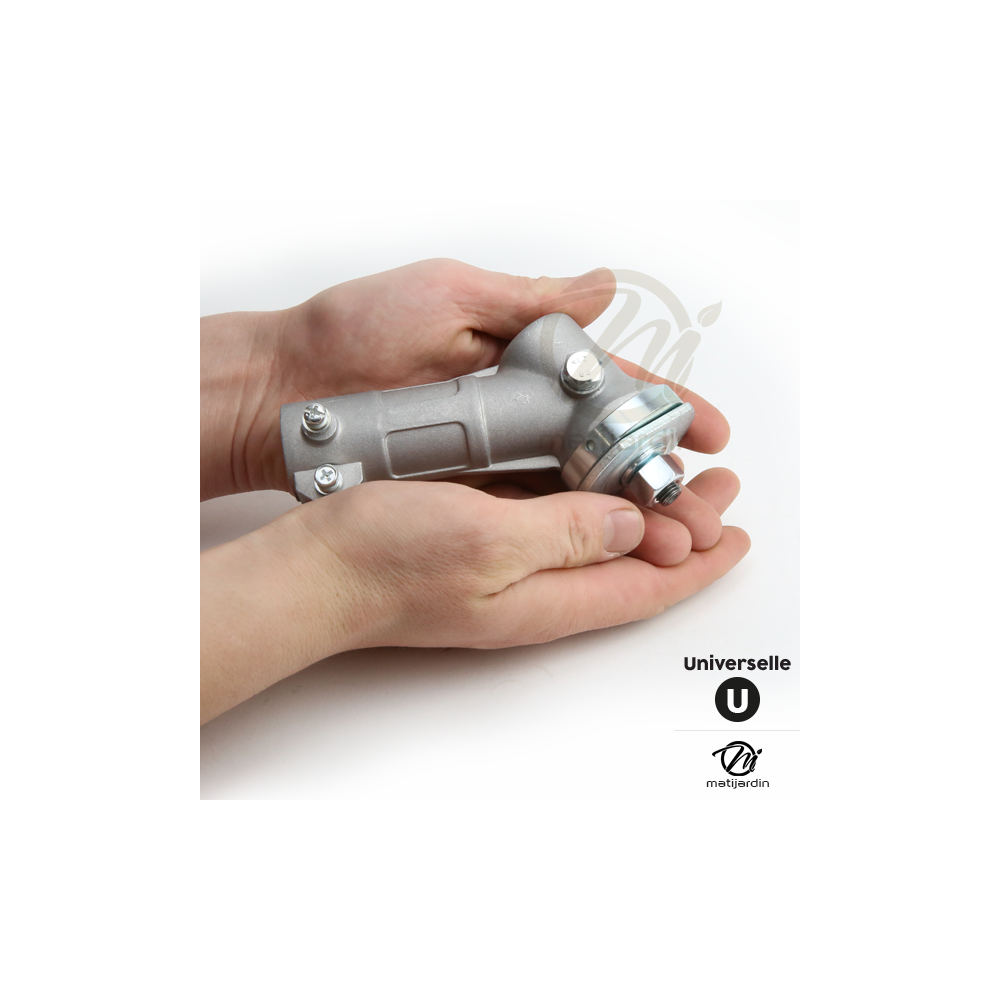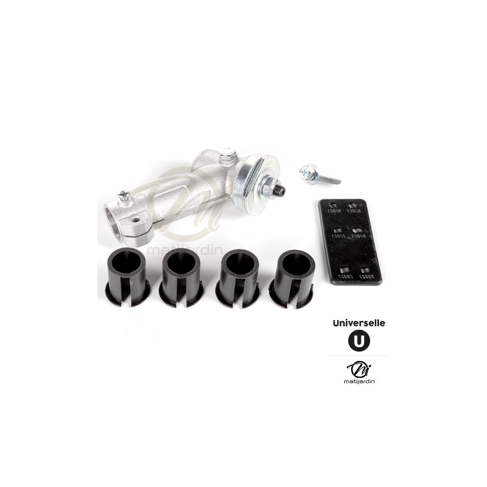 Le renvoi d'angle universel est la pièce idéale pour remettre en état votre débroussailleuse, quelle que soit sa marque. Il s'adapte à de nombreux modèles grâce à son système d'adaptateurs interchangeables.