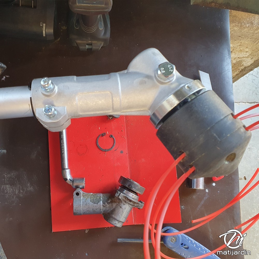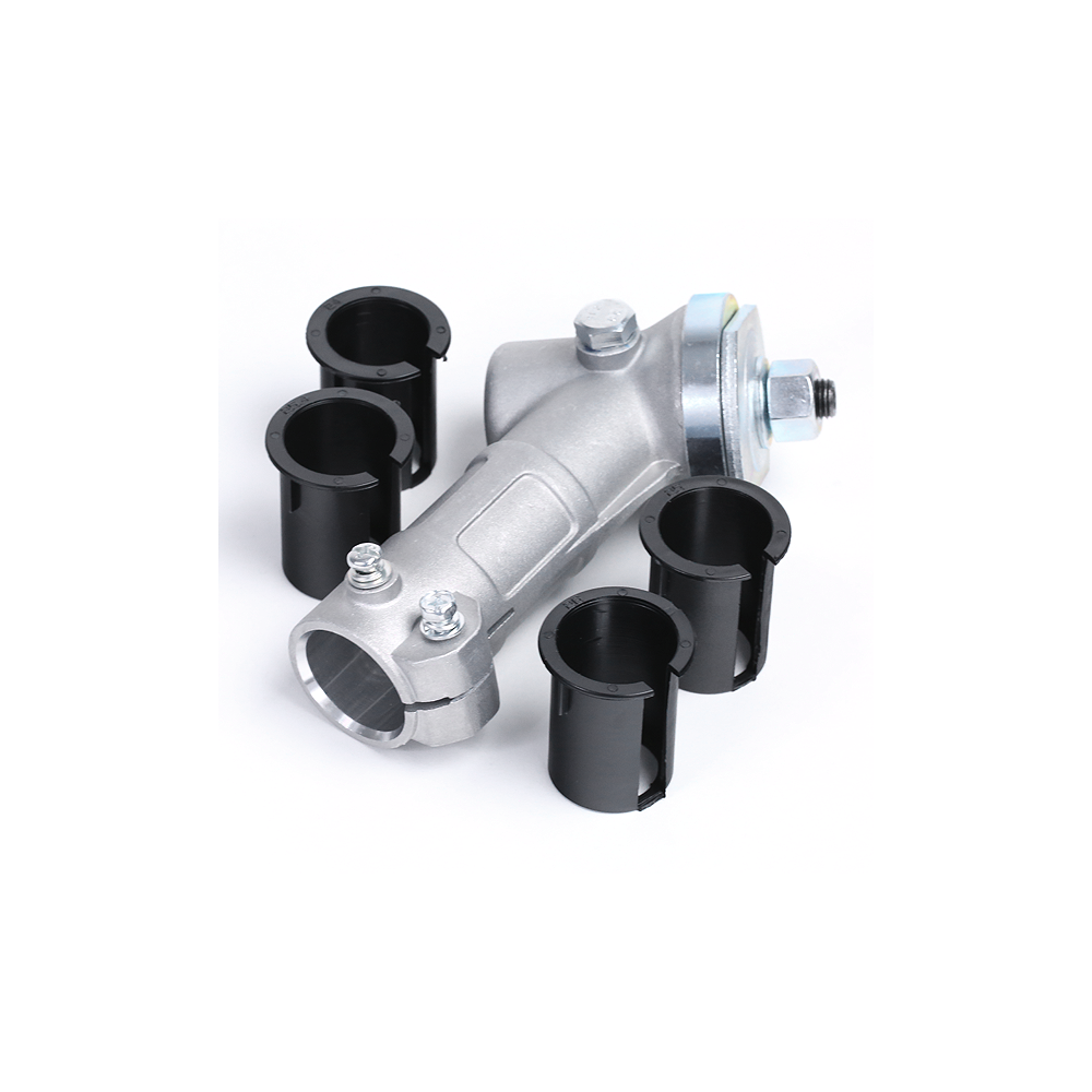 Ce renvoi d'angle pour débroussailleuse permet de remplacer un boîtier usé et de retrouver une transmission fiable vers la tête de coupe. L'adaptateur fourni facilite l'adaptation au bon profil de tube.