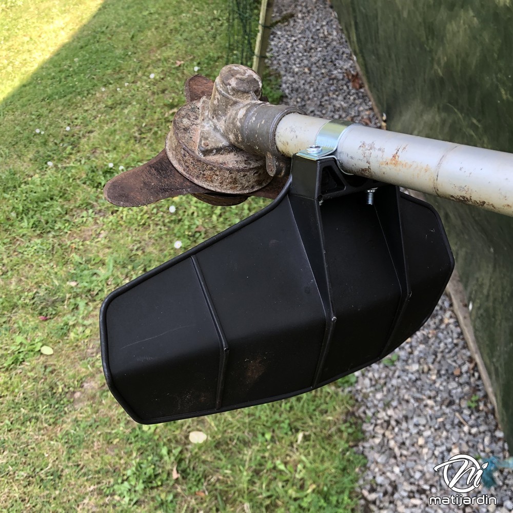 Le carter est votre bouclier n°1 : il stoppe les débris à la source. Conseil de montage : veillez à fixer le carter sur le renvoi d'angle de façon à ce qu'il soit au plus près de la tête de coupe. Un écart minimum assure que les projections sont interceptées immédiatement avant de prendre de la vitesse.