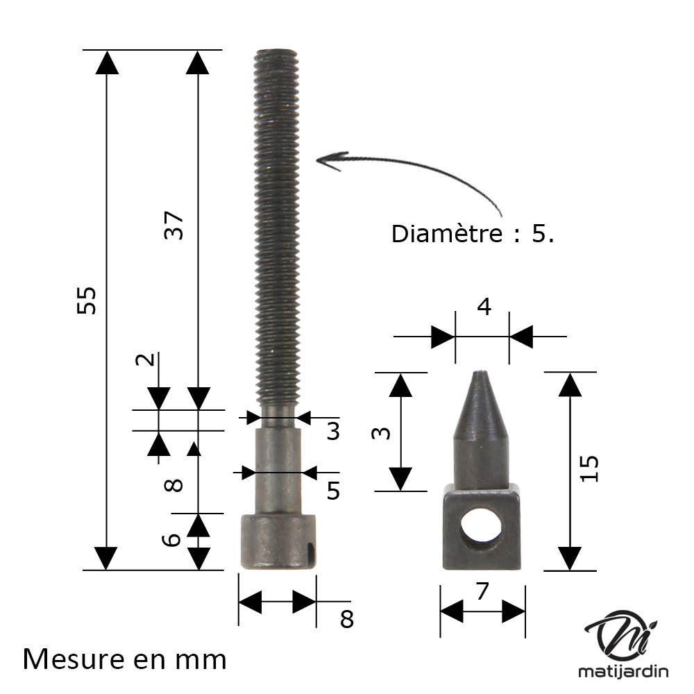 Vis de tension de chaîne adaptable pour tronçonneuse de marque Husqvarna modèles 154 et 254