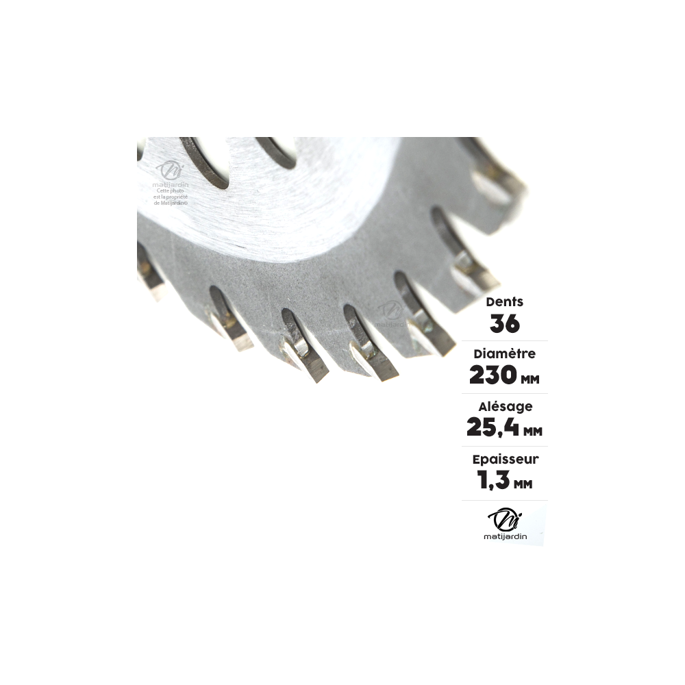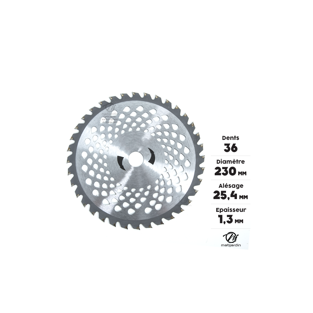 Lame débroussailleuse disque carbure tungstène Multi-aérations 36 dents Ø 230 mm x 1,3 mm Alésage 25,4/20 mm multi aérations