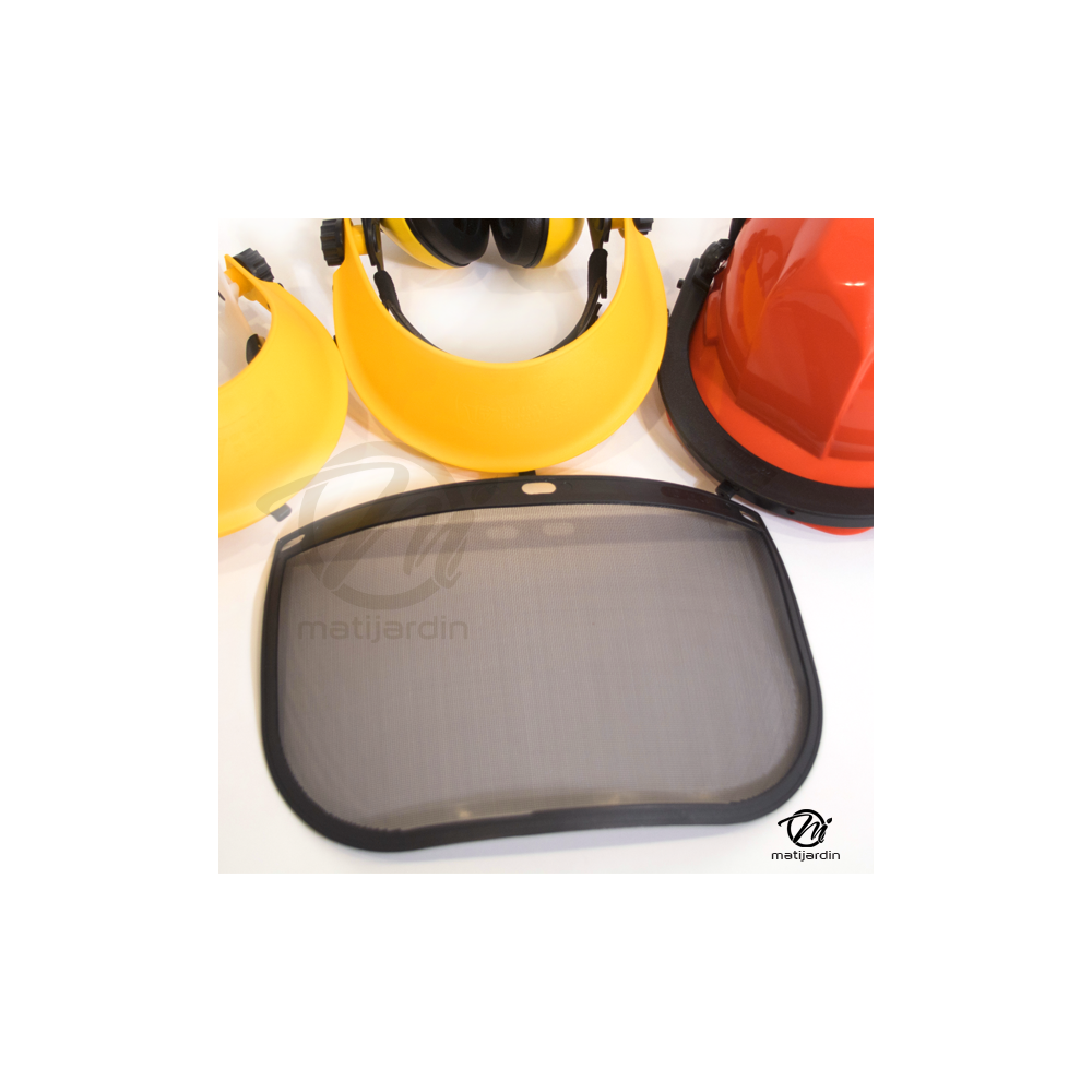 Ecran grillagé en treillis métal avec renfort, respirant, évite la formation de buée contrairement aux visières de protection en polycarbonate.