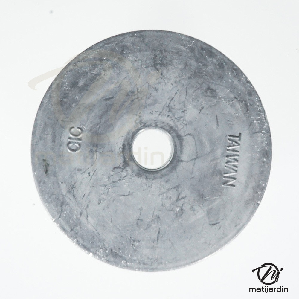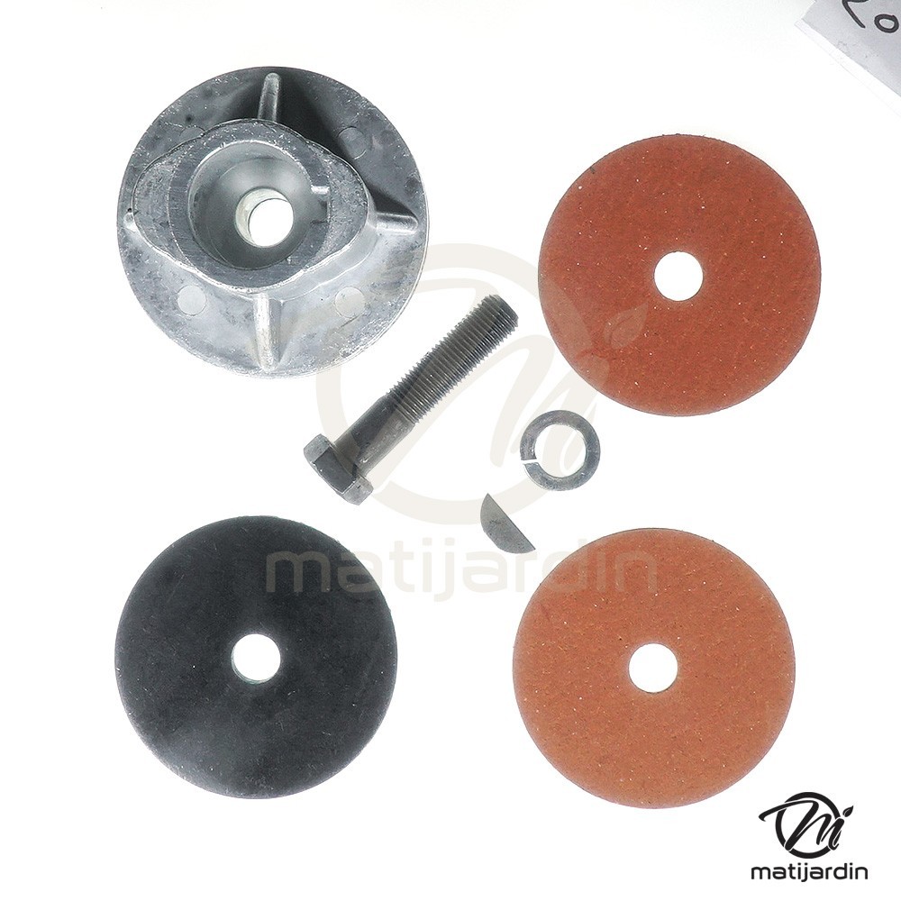 Livré avec rondelles de friction, vis Ø 9,5 mm long total 50mm long filetage 30mm et clavette demi lune épaisseur 4mm long de 15mm.