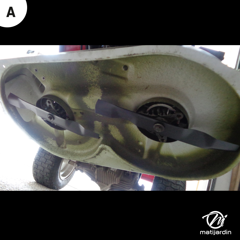 A/ Lame tondeuse. Pour tracteur tondeuse Verts Loisirs VL 135 H 36A. (Photo Client)