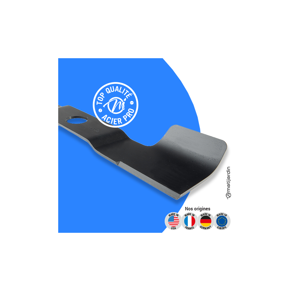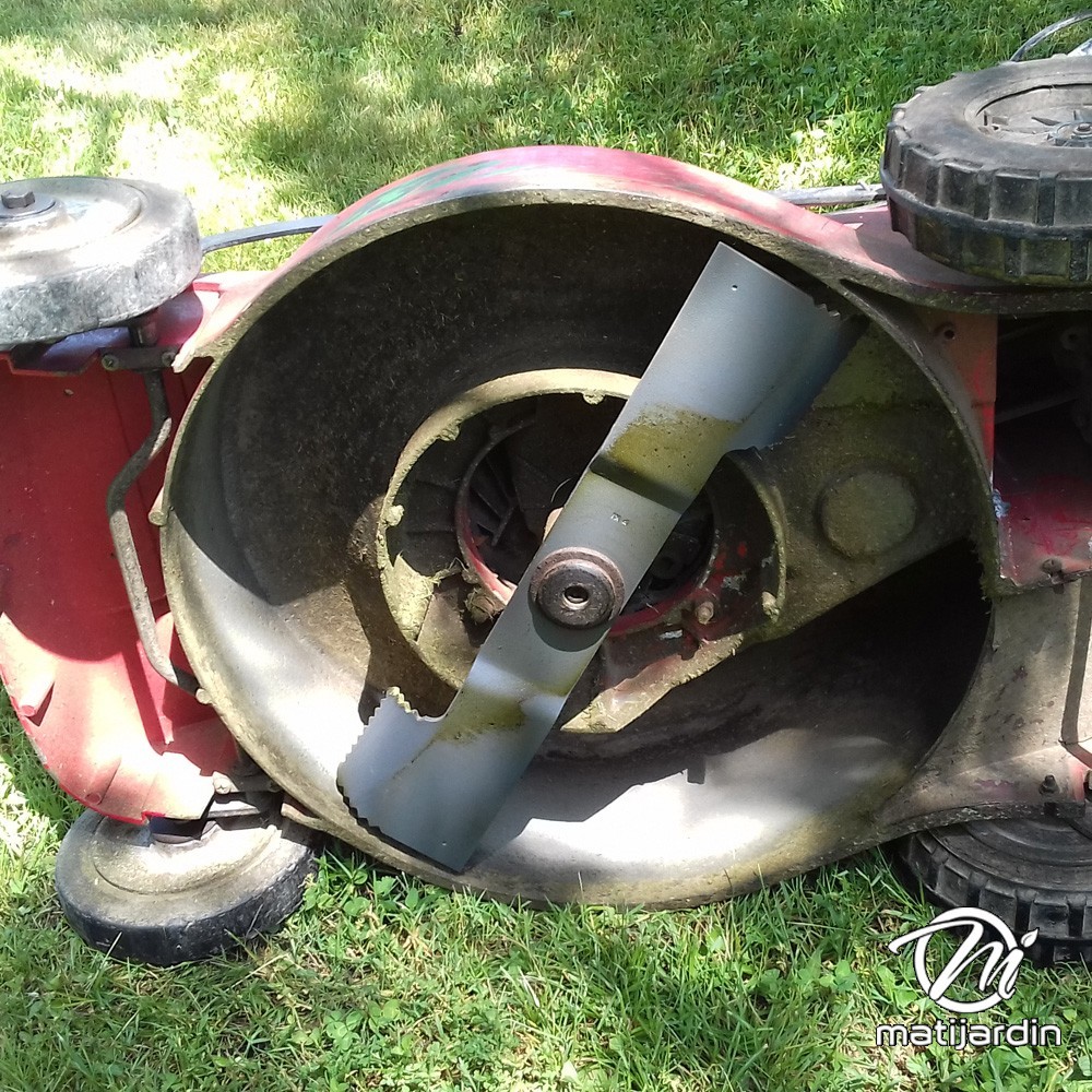 Astuce remontage. Au remontage, attention au sens de montage de la lame ! Pour la plupart des modèles de tondeuse, le côté plat du tranchant de la lame (illustration 2) doit se retrouver côté pelouse. Soyez vigilant, la partie coupante de votre lame peut vite vous envoyer aux urgences ! Matijardin vous conseille d’utiliser des gants.