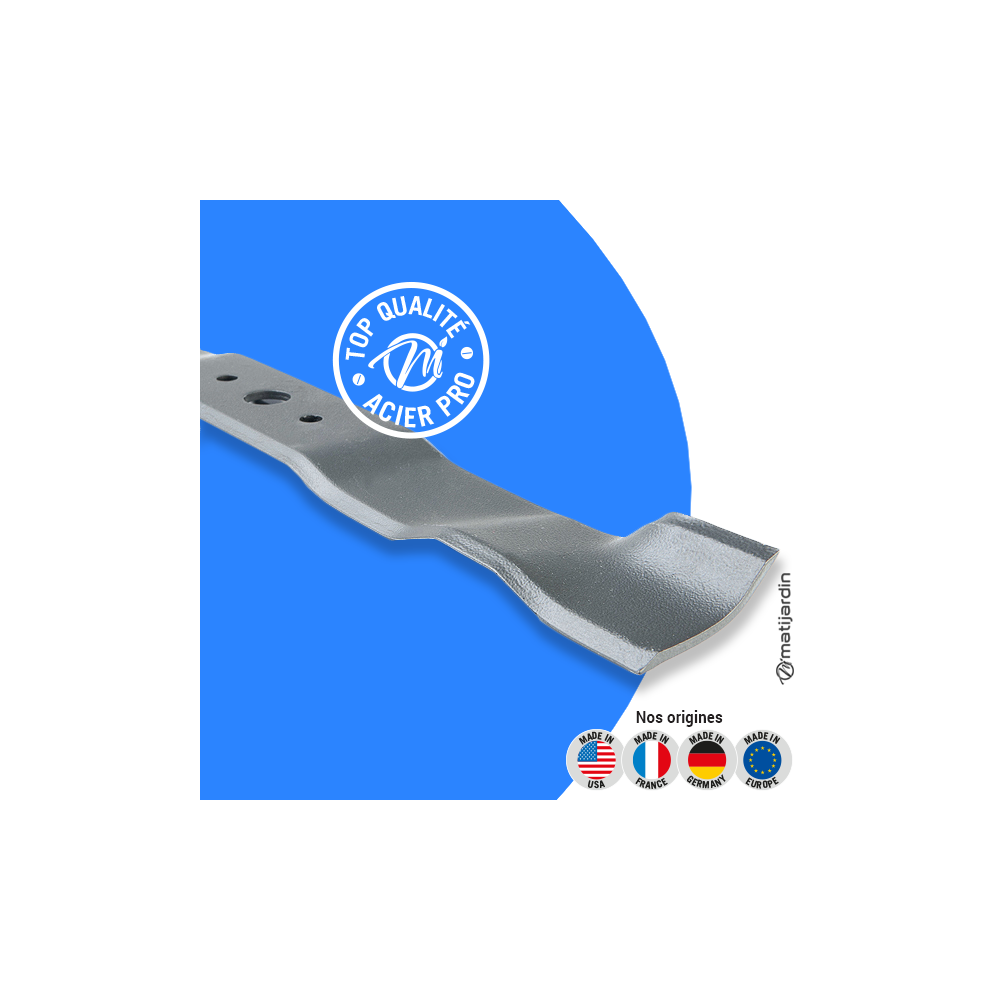 Astuce remontage. Au remontage, attention au sens de montage de la lame ! Pour la plupart des modèles de tondeuse, le côté plat du tranchant de la lame (illustration 2) doit se retrouver côté pelouse. Soyez vigilant, la partie coupante de votre lame peut vite vous envoyer aux urgences ! Matijardin vous conseille d’utiliser des gants.