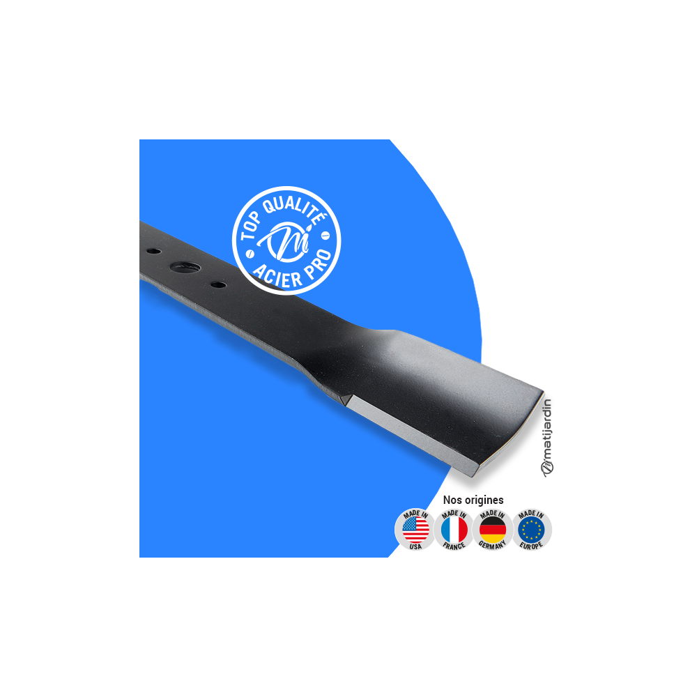 Astuce remontage. Au remontage, attention au sens de montage de la lame ! Pour la plupart des modèles de tondeuse, le côté plat du tranchant de la lame (illustration 2) doit se retrouver côté pelouse. Soyez vigilant, la partie coupante de votre lame peut vite vous envoyer aux urgences ! Matijardin vous conseille d’utiliser des gants.
