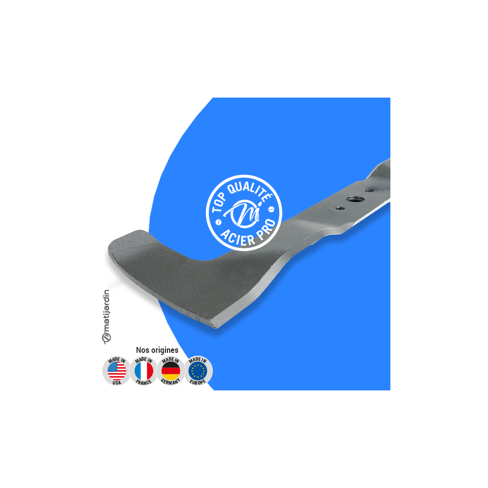 Astuce remontage. Au remontage, attention au sens de montage de la lame ! Pour la plupart des modèles de tondeuse, le côté plat du tranchant de la lame (illustration 2) doit se retrouver côté pelouse. Soyez vigilant, la partie coupante de votre lame peut vite vous envoyer aux urgences ! Matijardin vous conseille d’utiliser des gants.