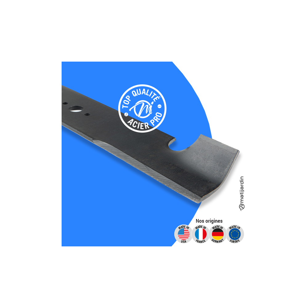Astuce remontage. Au remontage, attention au sens de montage de la lame ! Pour la plupart des modèles de tondeuse, le côté plat du tranchant de la lame (illustration 2) doit se retrouver côté pelouse. Soyez vigilant, la partie coupante de votre lame peut vite vous envoyer aux urgences ! Matijardin vous conseille d’utiliser des gants.