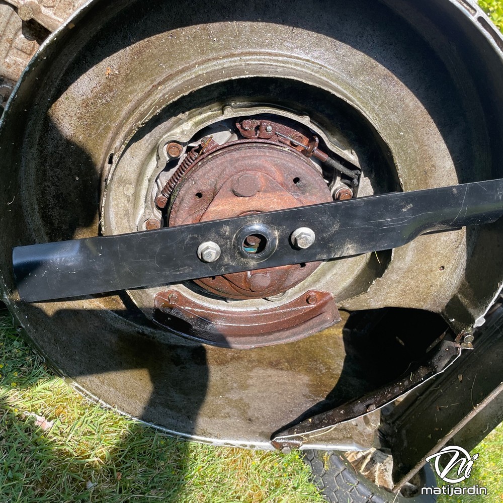 Dégripper. Pour vous aider au démontage de la lame de votre tondeuse, Matijardin vous conseille d'utiliser sur les vis, du WD40, pour faciliter le desserrage (également au remontage).