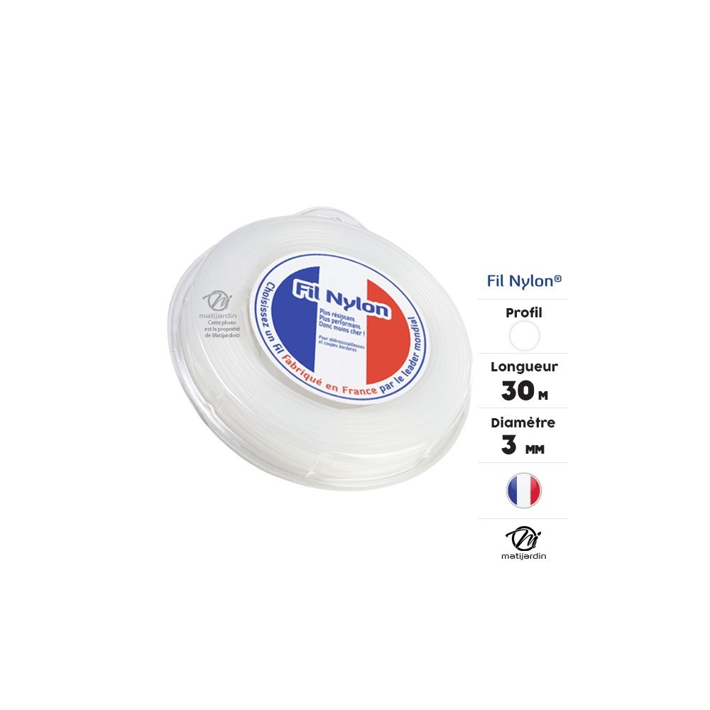Fil nylon fabriqué en France. Convient pour toutes les marques de machine. Confectionné à partir de matériaux hautement performants, il offre une parfaite résistance à l'abrasion. Une coupe plus nette et moins de casse à l'oeillet. Utilisé pour couper l'herbe ou les chardons.